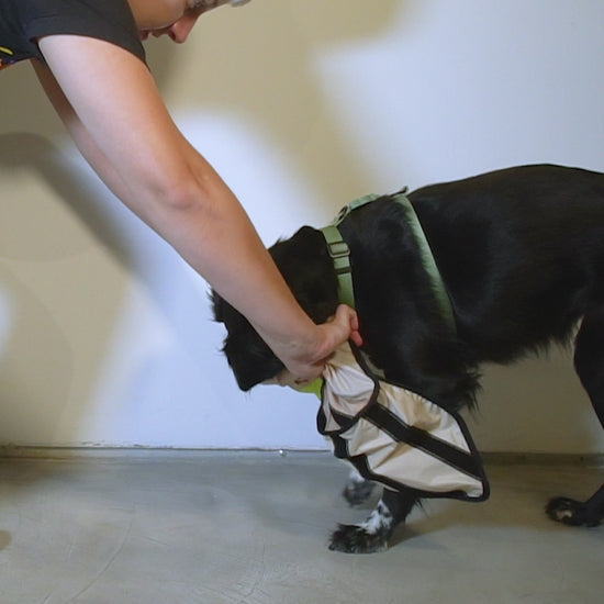The 90's raincoat for dogs by Zee.Dog is made of durable ripstop fabric and is waterproof. It features dual adjustment with straps at the neck and belly, as well as a reflective stripe for increased visibility. Since it's foldable, you can take it anywhere and store it conveniently. Our raincoat is available in sizes S, M, L, and XL.