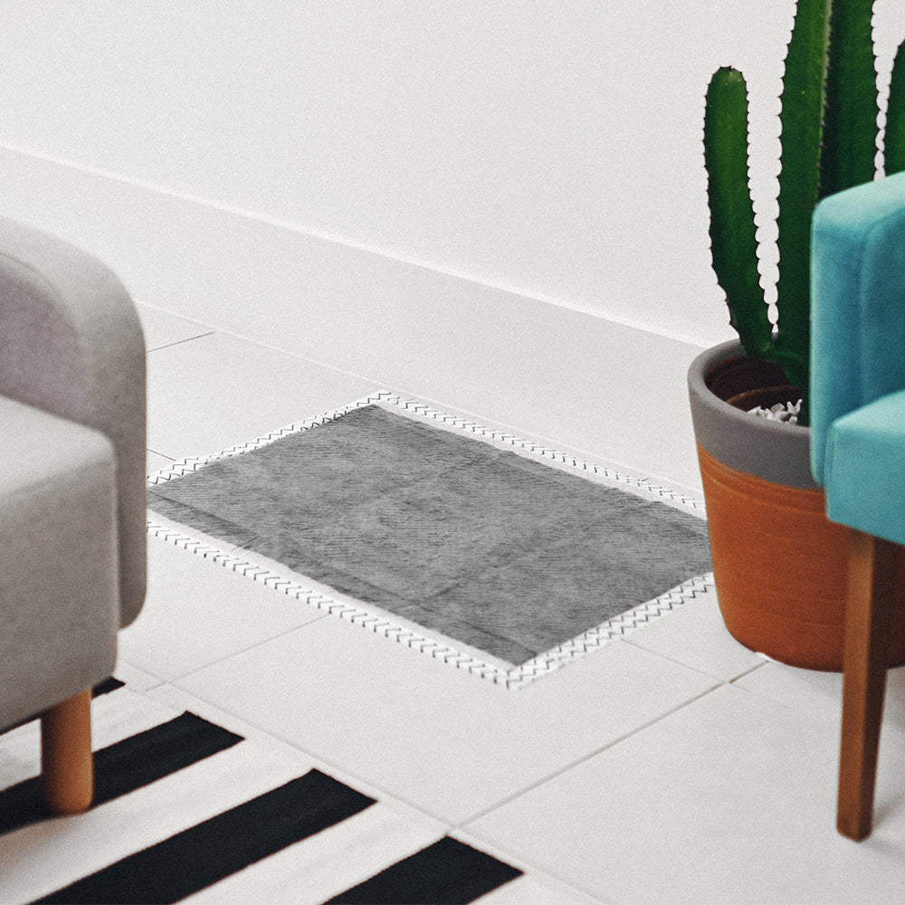 The Zee.Pad dog potty pad is ultra-absorbent and camouflages urine. With an exclusive design, it features adhesive on the base to prevent slipping on the floor. Additionally, it is made with bamboo charcoal that neutralizes odors and contains a canine attractant to encourage your dog to pee in the right place.